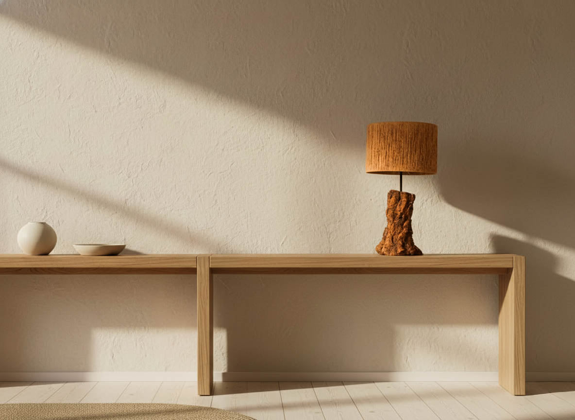 With a wide base and low body, TOSCO is a lamp that takes its form without artifice—heavy, dense, genuine. It's a celebration of wood as it is, unsoftened, with knots, curves, and imperfections that tell stories. Its discreet yet firm presence transforms any surface into a focal point, bringing warmth, truth, and an almost primal aesthetic to the space. TOSCO is a piece that cannot be explained, it must be felt.