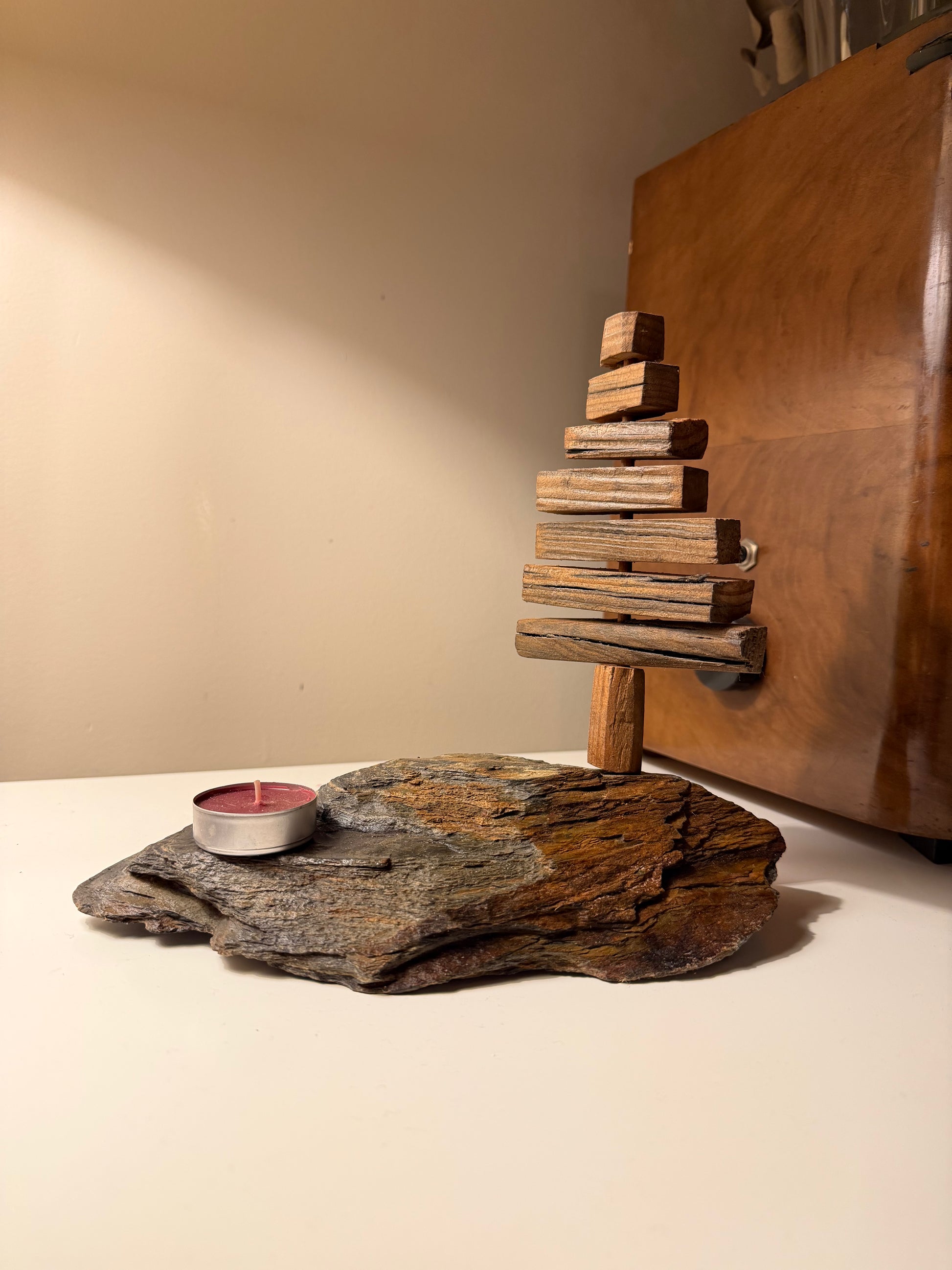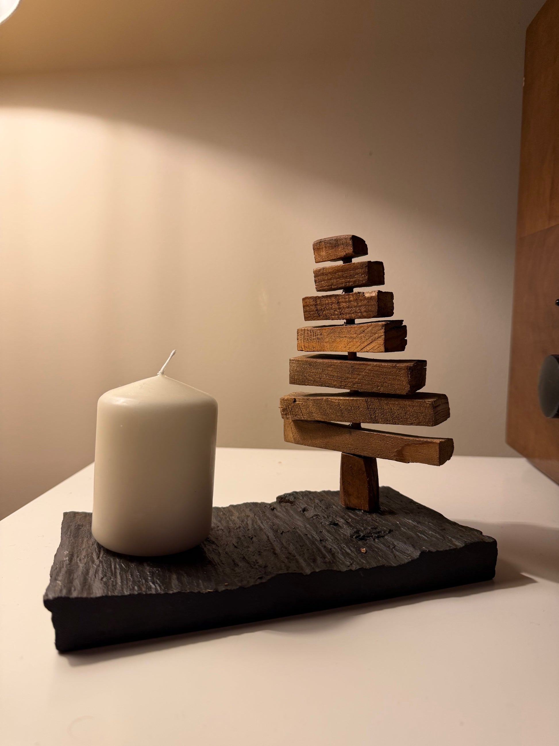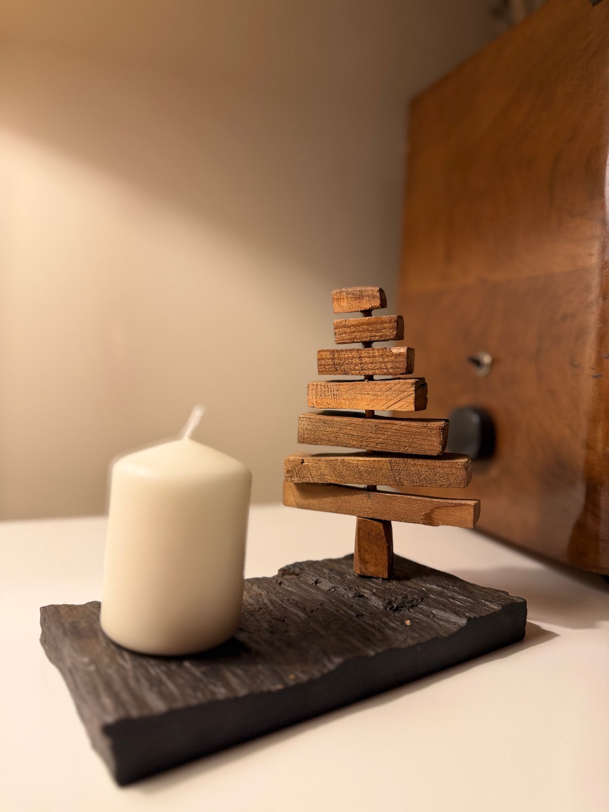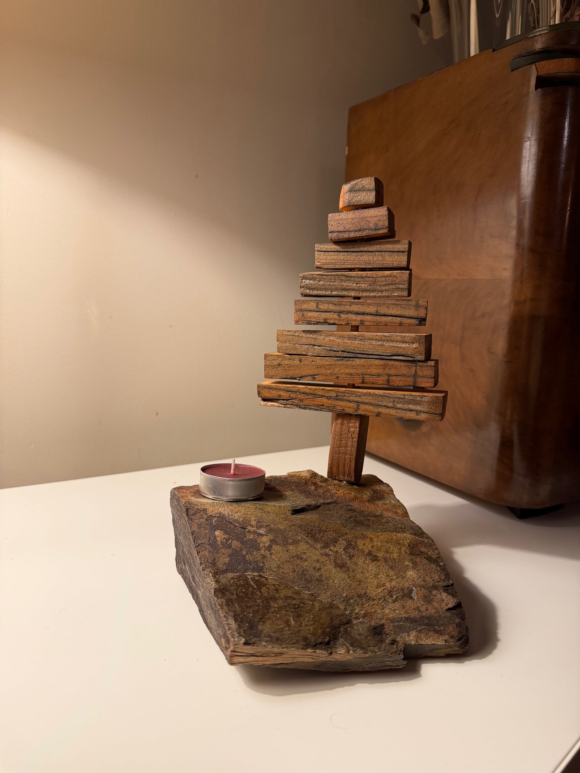 As ARBÔREAS nascem de pequenos pedaços de madeira recuperada, assentes sobre pedra natural, como árvores que encontram novamente o seu lugar no mundo. Cada uma é única — simples, orgânica e cheia de carácter — um pequeno presente que leva consigo a calma da natureza. As ARBÔREAS celebram a beleza das diferenças como um pequeno silêncio da floresta dentro de casa.