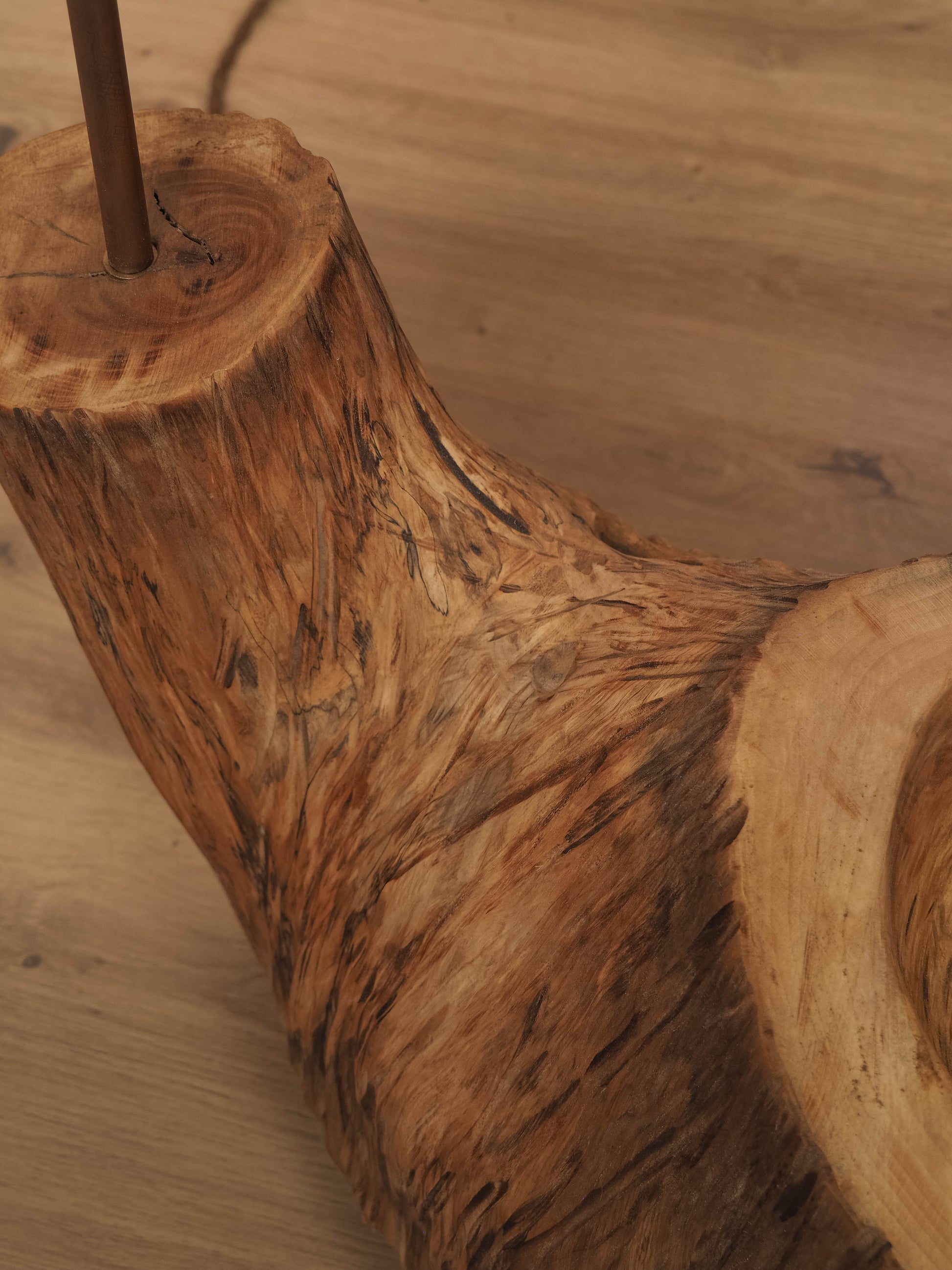 Inspirado na força e rusticidade das terras que nos moldam, CUCHARRO traz consigo a essência da madeira na sua forma mais genuína. Com contornos naturais e uma presença marcante, este candeeiro evoca a simplicidade e a robustez das peças artesanais, feitas para atravessar gerações. Escavado com intenção, como o utensílio que lhe dá nome, CUCHARRO transforma-se num objeto de luz com alma e memória. Uma peça singular, talhada pelo tempo e pela mão do artesão.