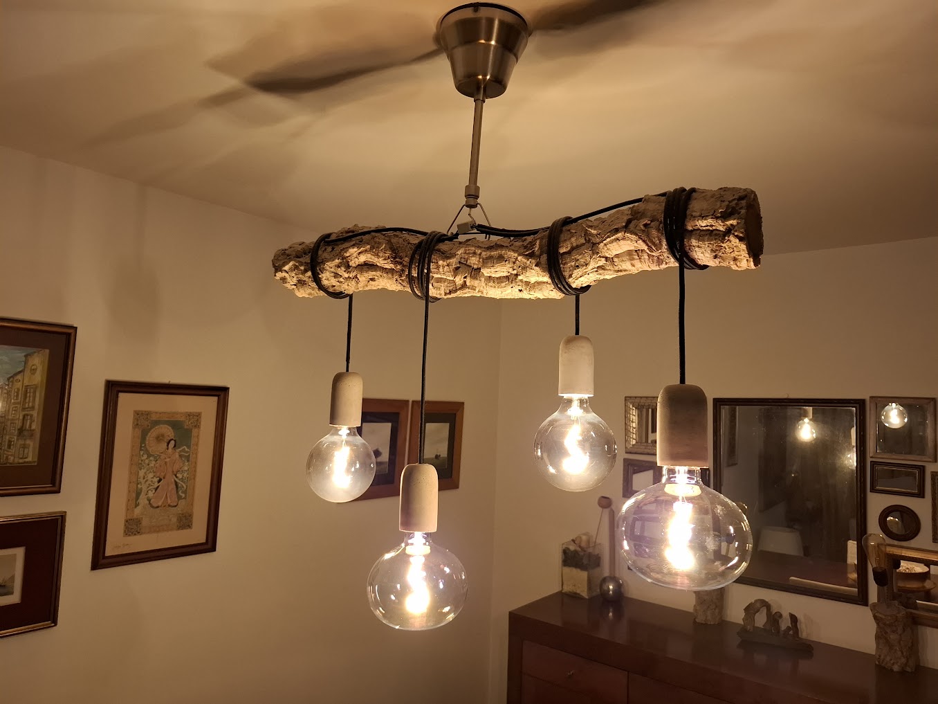 Luminária rústica de sobreiro vivo