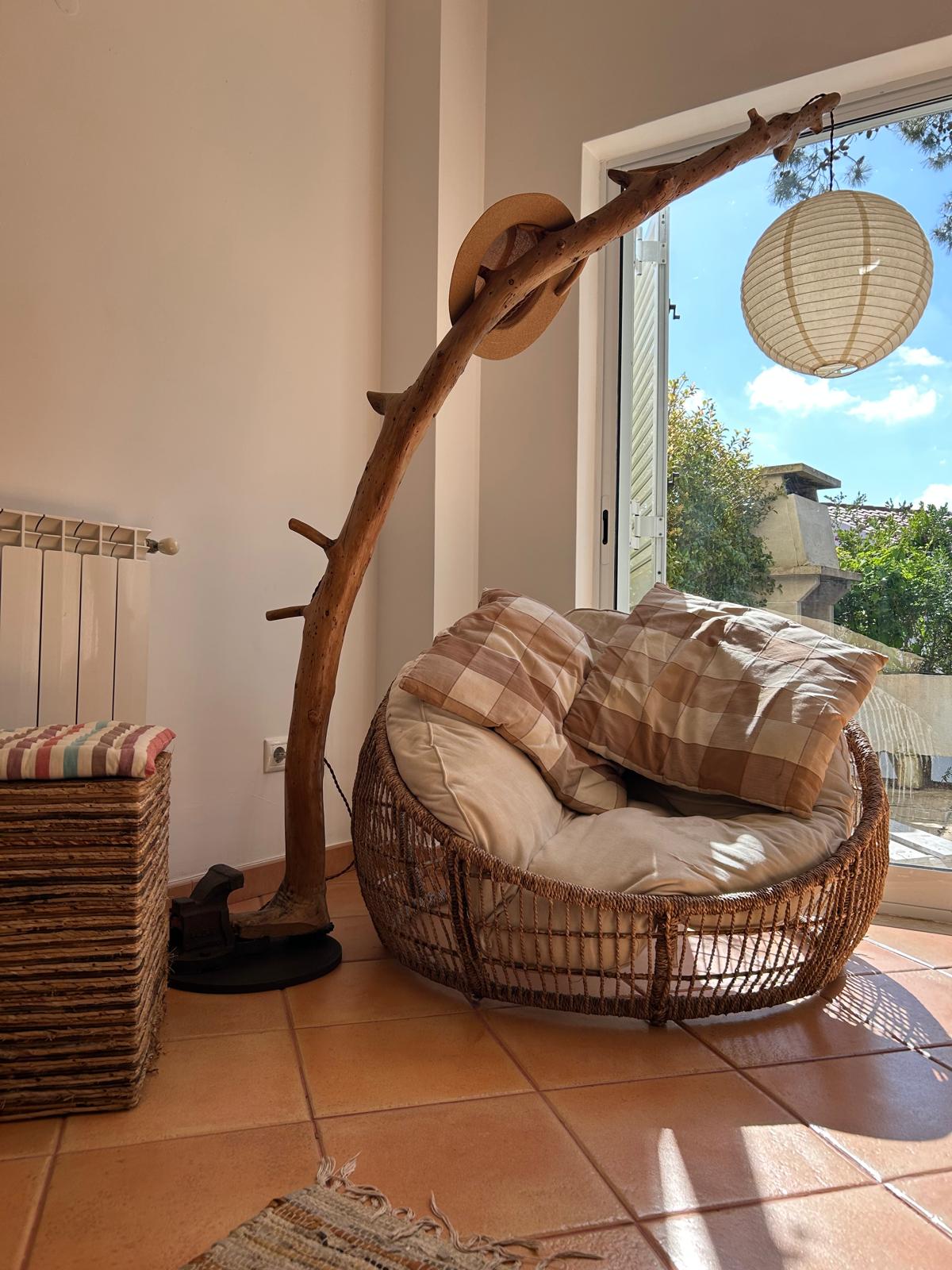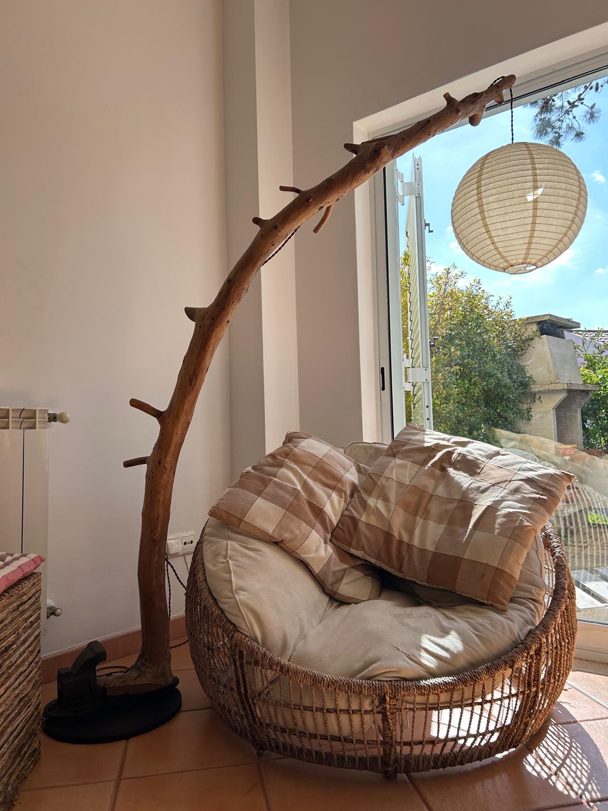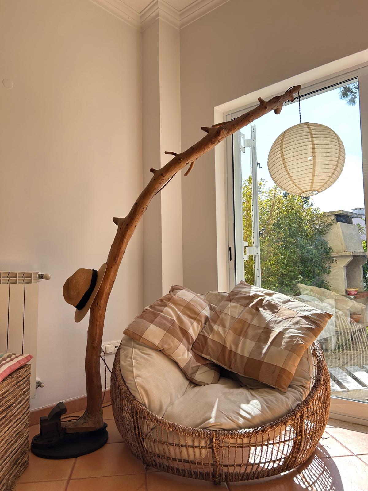 Este tronco foi levado pelo tempo e moldado pela água, antes de encontrar um novo destino. A sua curva suave lembra o gesto de quem se rende ao movimento das marés, mas resiste. Feito de madeira encontrada, marcada por viagens invisíveis, este candeeiro carrega sal, vento e silêncio. Agora, ancorado num canto de casa, oferece luz — como se a sua deriva tivesse finalmente terminado.