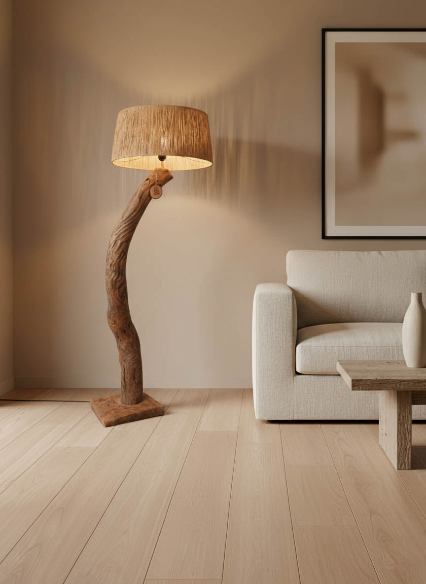 Imponente e esguio, VERTIGEM desafia a gravidade com a sua presença marcante e o seu tronco de madeira retorcido, cheio de textura e personalidade. Como uma escultura viva, eleva-se com ousadia, trazendo verticalidade, drama e sofisticação a qualquer espaço. A luz quente e difusa que dele emana envolve o ambiente com suavidade, realçando as curvas orgânicas da peça e criando um jogo hipnótico de sombras e brilhos. Mais do que um ponto de luz, VERTIGEM é uma atmosfera — uma fusão entre natureza e design, onde a beleza imperfeita ganha destaque num equilíbrio quase impossível.